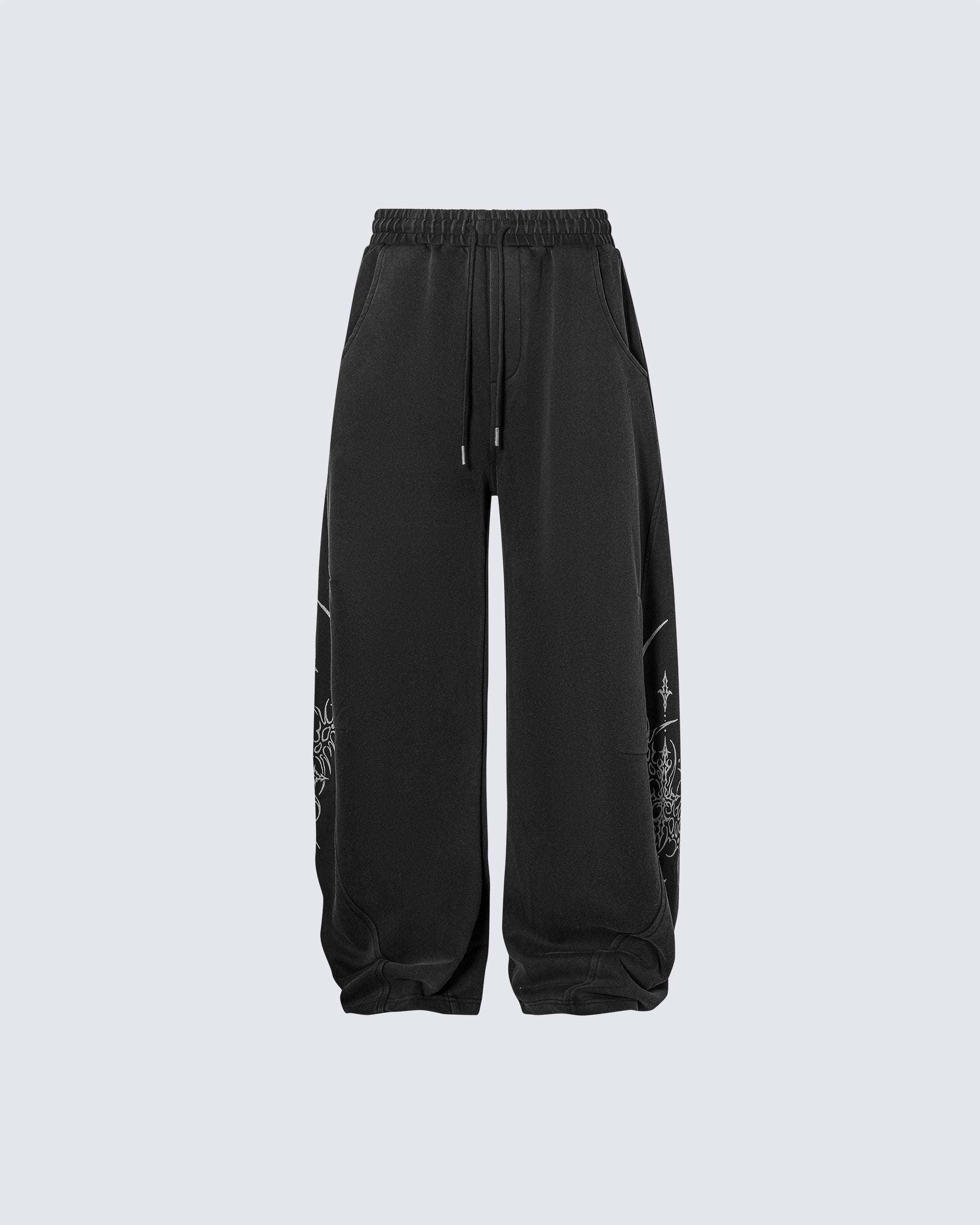 Wide-leg sweatpants with symmetrical embroidery on both legs