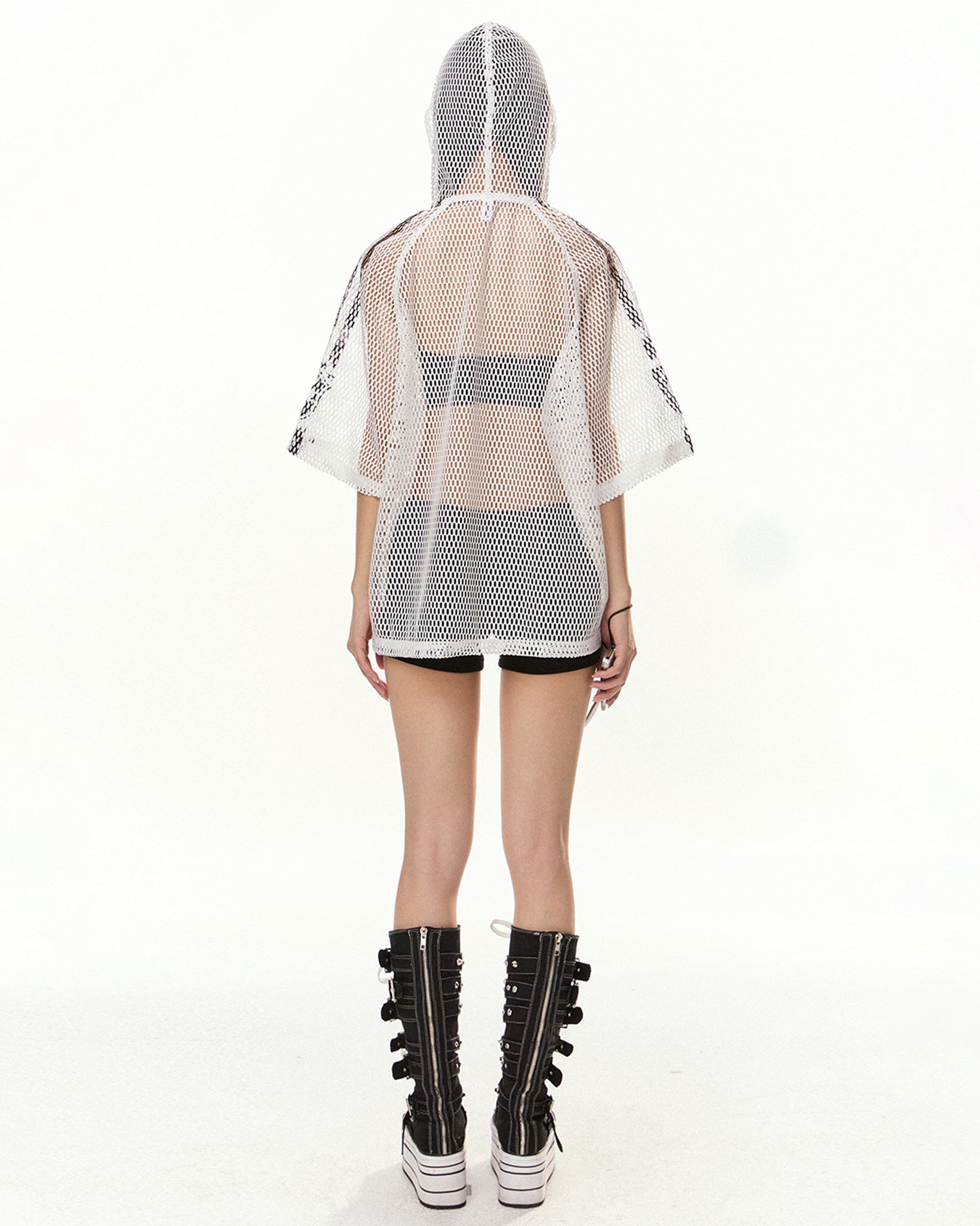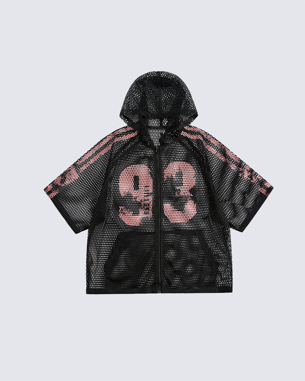 Designed with oversized varsity prints and breathable open-knit mesh, this piece combines retro sportswear with Y2K attitude. Whether layered over a crop top or worn solo, it delivers effortless street style with maximum comfort.